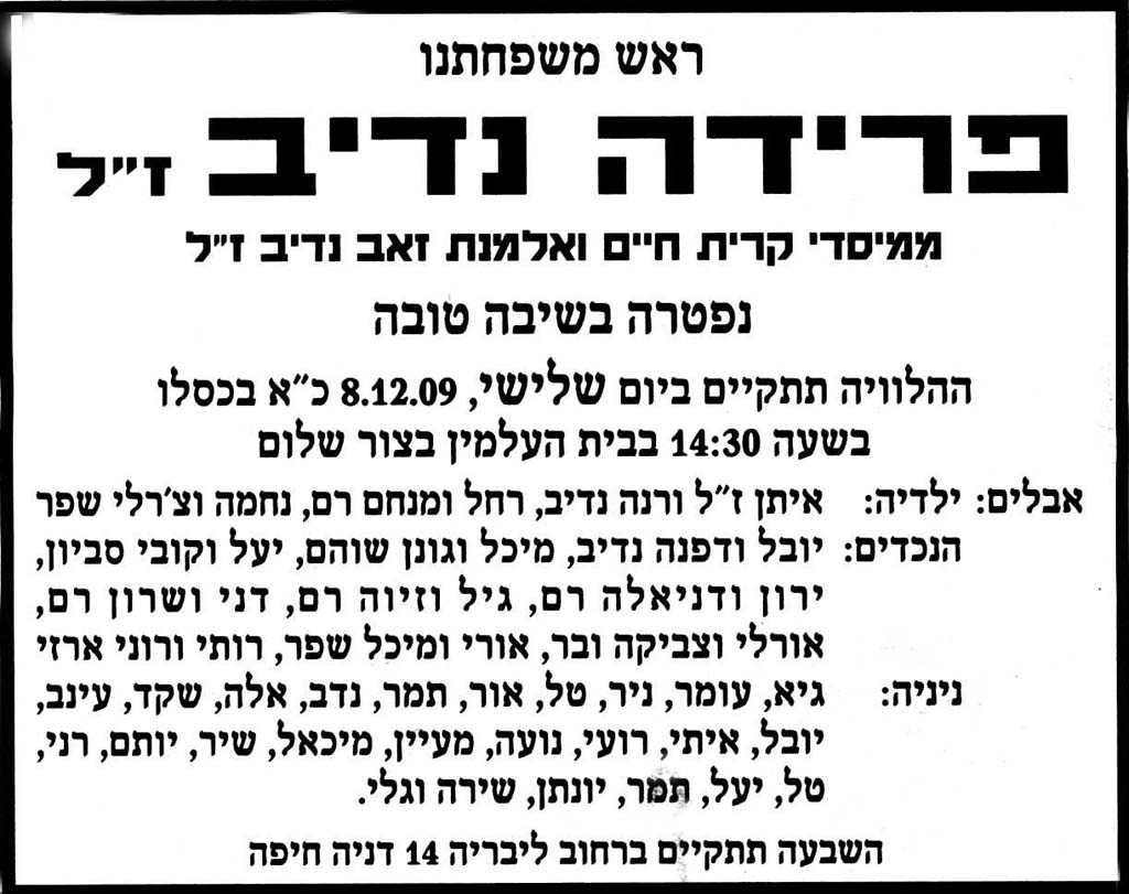 ההלוויה תתקיים מחר יום ששי בשעה 11:00 בבית העלמין