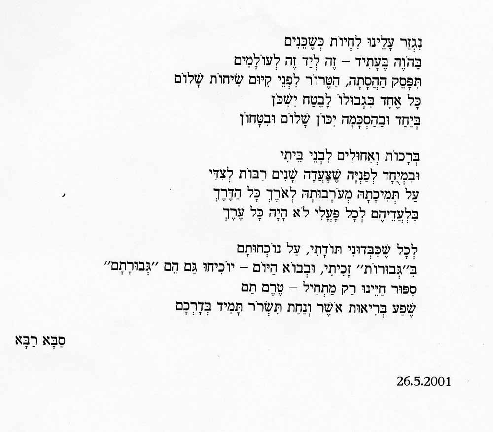 פניה שתבדל לחיים ארוכים ,אספה את החומר – יהי זכרו ברוך.