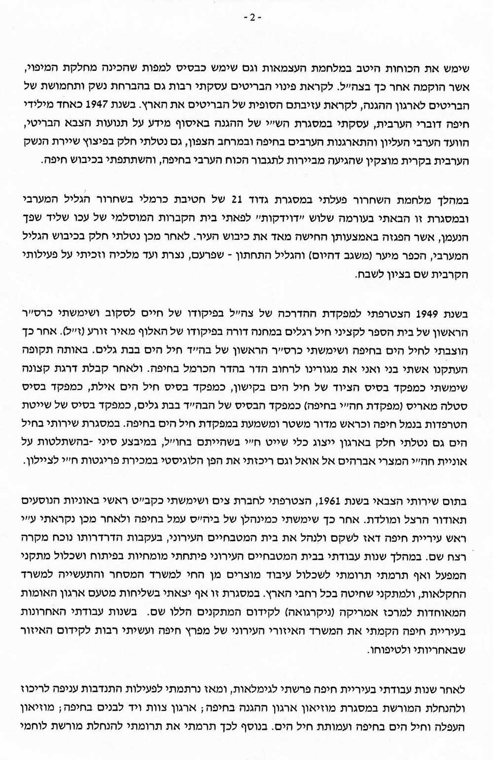 על מעורבתו בתחומים רבים של חיי הקהילה והמדינה ובעיקר בבטחון.