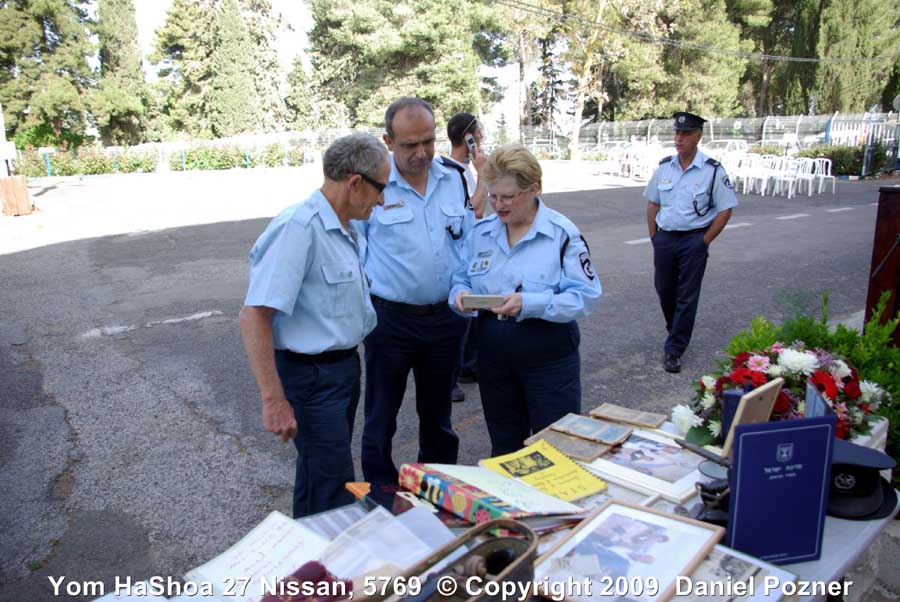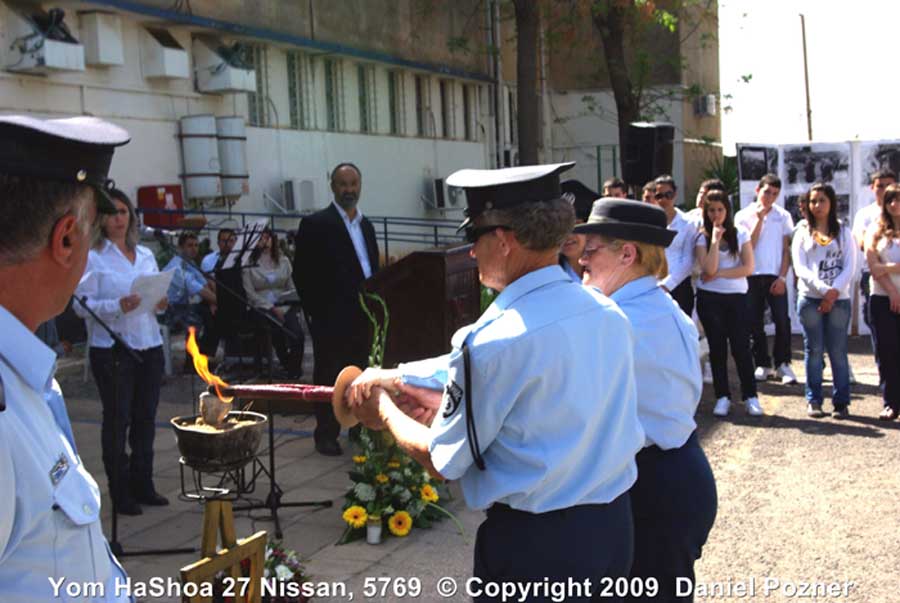 וחנוך ניצול שואה מדליק משואה במשטרת ישראל -צפת,ואיתם המוצגים מהשואה והאות לוחם