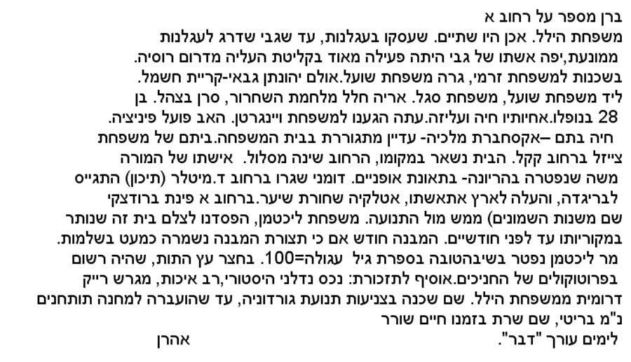 אלכסנדר זייד 14.9.06 רשימת המשפחות של רחוב א'