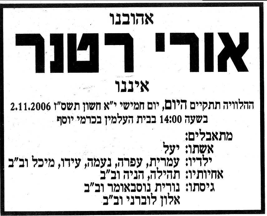 30.11.06 חוברת זכרון לאורי פרנס ? ![]()