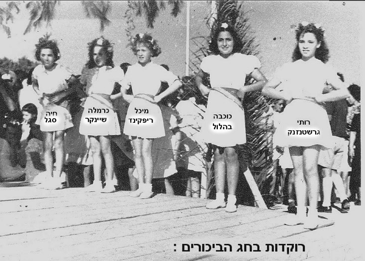 באים בחולצות לבנות זרים על הראש וביד סלסלה-הטנא-שהיה עמוס מכל טוב שהיה. בגן נערכה