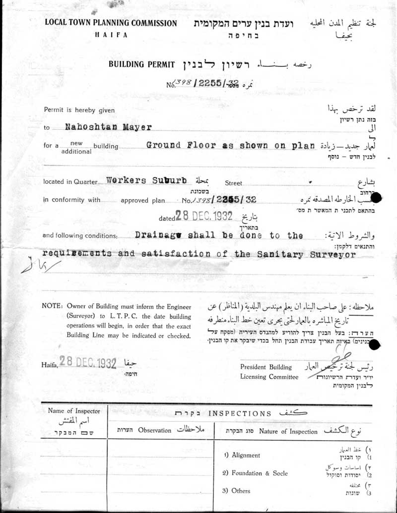 המקום: שכונת עובדים Workers suburb. המהנדס הבריטי הוסיף דרישה: יש להתקין