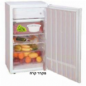 במקרר הקטן. את הקרח שמו בתא מיוחד, למעלה במקרר, כדי שהקור ירד למטה לחלל המקרר.